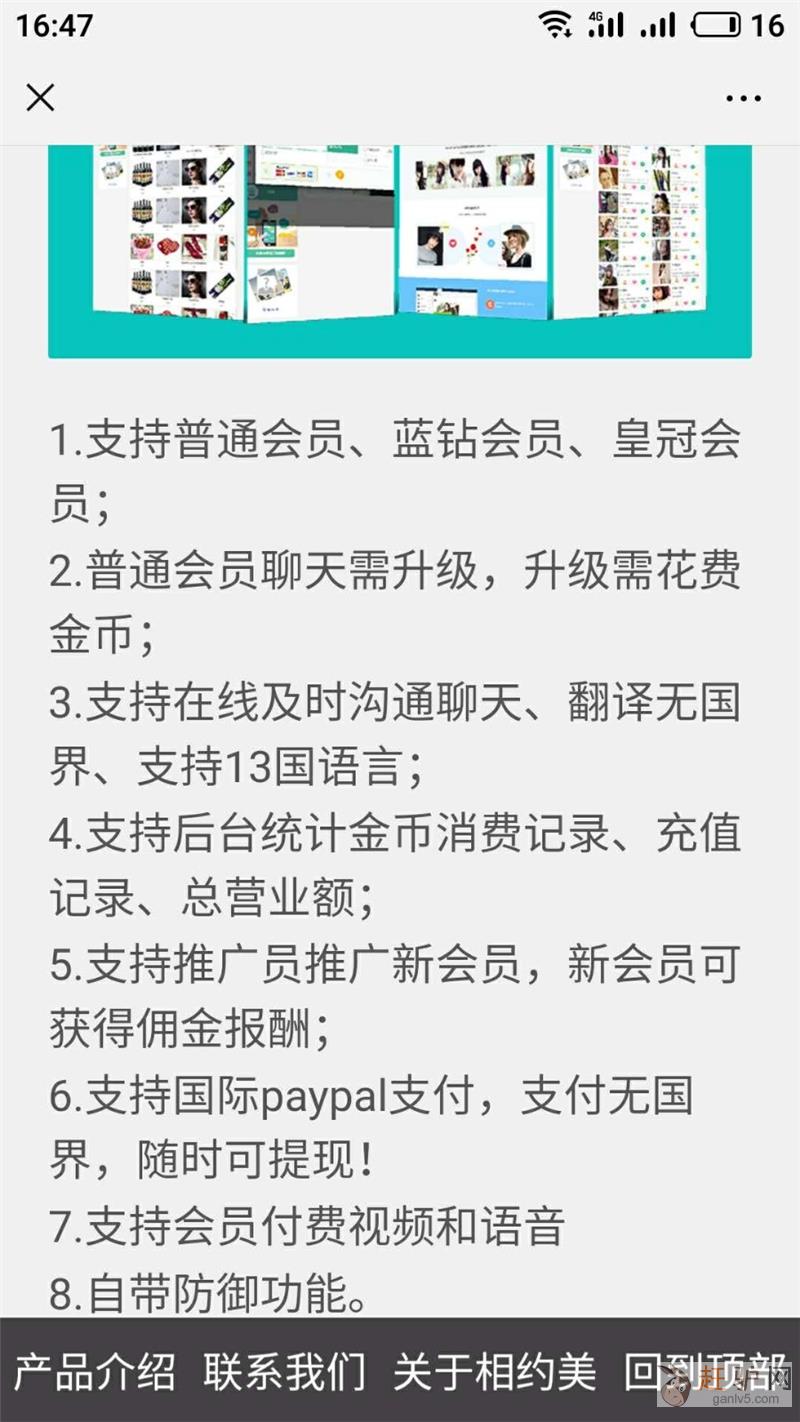 支持普通会员,蓝钻会员,皇冠会员;普通会员聊天需升级,升级需花费金币; 支持在线及时沟通聊天,翻译无国界,支持12国语言; 赶_驴_网