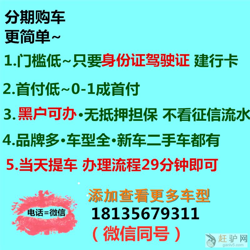 一两万当天办理提二手车或者新车。零首付,零门槛,当天提车,渝期可办理提车一成首付,零首付, 最长可分期48个月不用提供居住证,不用提供高资质,身份证驾照即可当天开走。也就是身份证+驾照+储蓄卡即可...