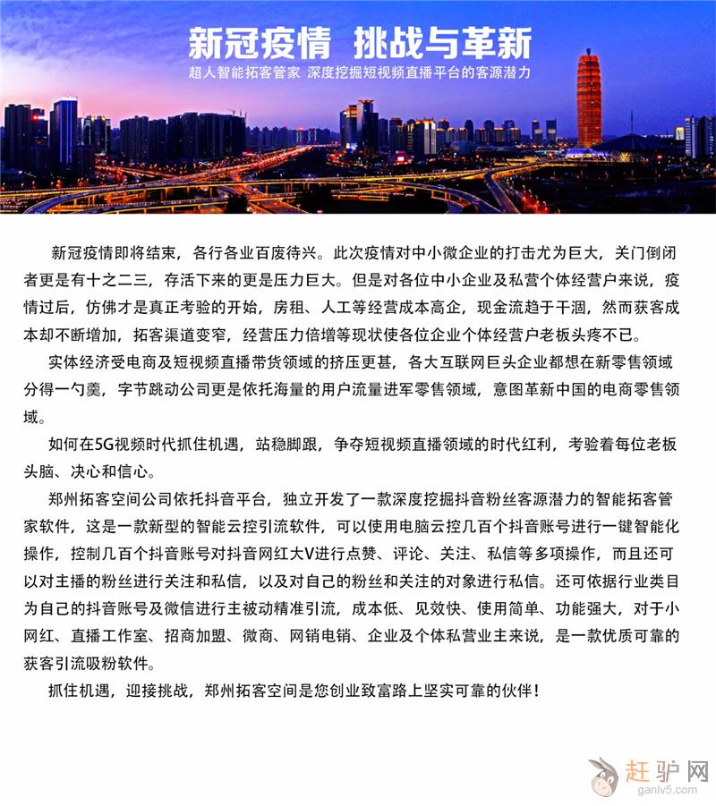 大家对于抖音的第一印象基本上都留在短视频社交平台这个阶段,基本都是刷短视频或者看人家直播。随着时间的流动,抖音成为了所有短视频平台里流量最大和活跃度最高的APP软件,从很多各大电视台的推广就可以看得出来,深受大家的喜爱和追捧。正因为抖音拥有巨大的流量,所以抖音云控系统也就出现了,主要是协助那些想要获取更多的顾客来自www.ganlv5.com