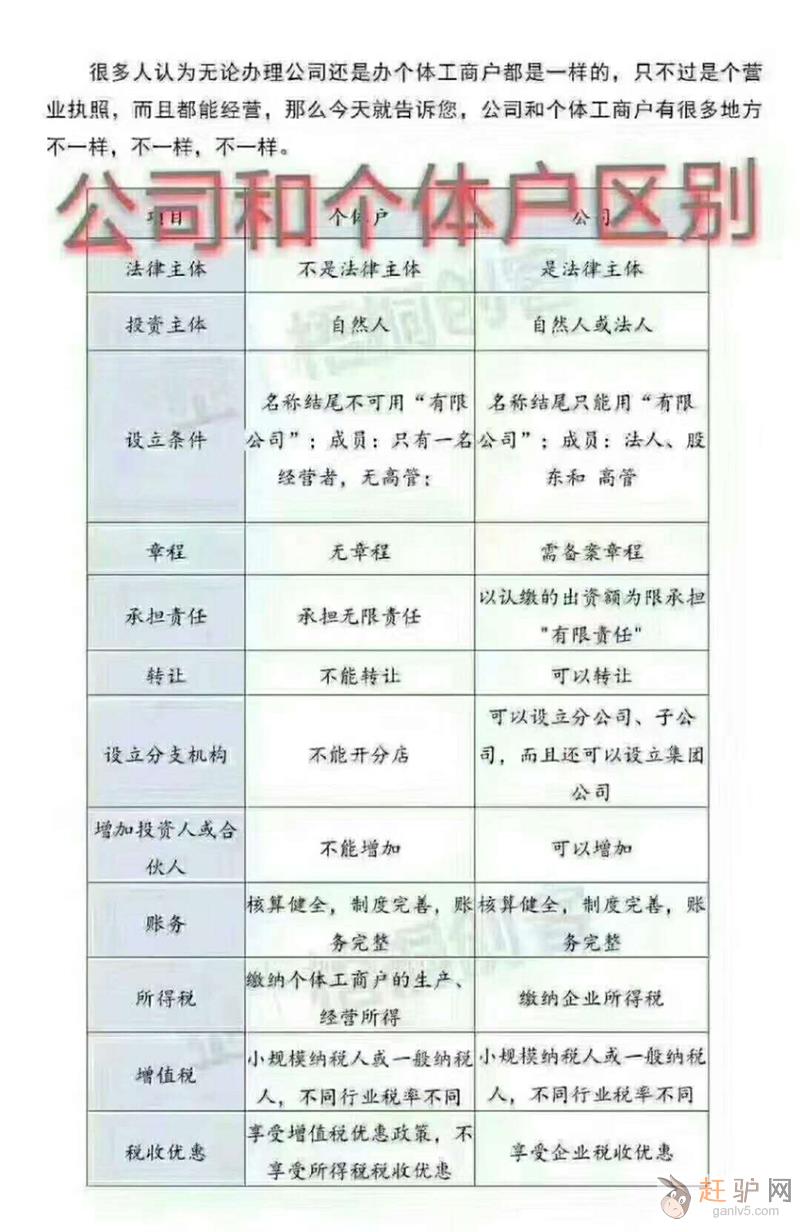 司公和个体的区别,那些办个体说免税的?让他给你负责!记住务税上没有任何免税一说,是只在不在减免内!g.a.n.l.v.5.c.o.m