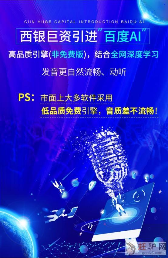 1、2020西银播音大师隆重推出百度AI版,西银播音大师斥巨资引进百度AI高保真引擎,声音自然、清晰流畅,极富感染力。