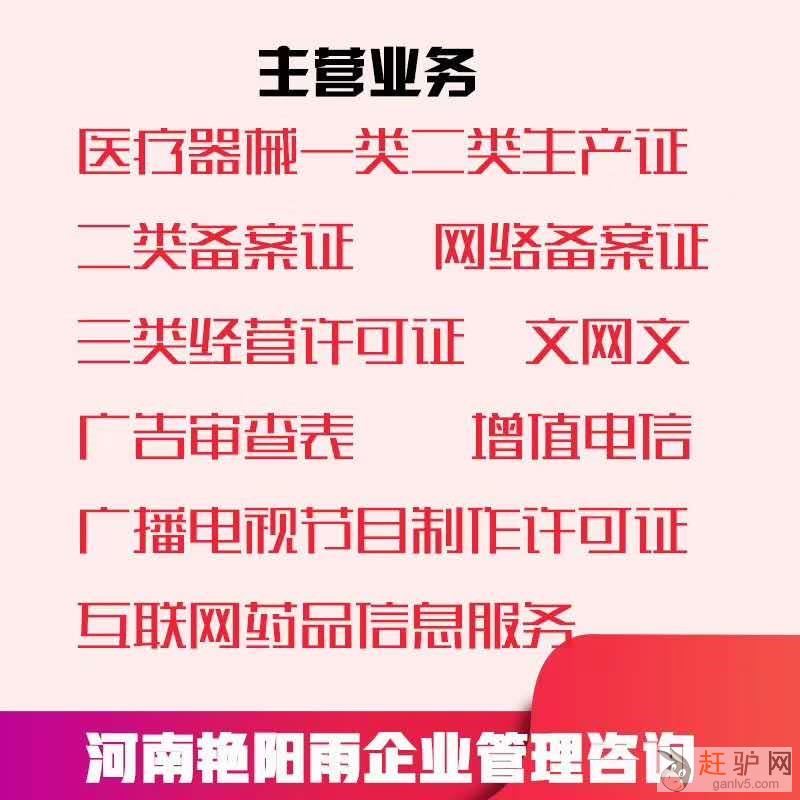 二类医疗器械备案证,三类医疗经营许可证专业一手办理郑州市www.ganlv5.com